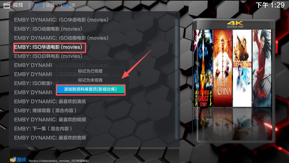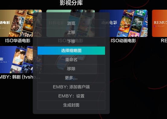 有多少个媒体库就按此操作多少次,另外也可以不通过这种方式,可以直接在下级文件夹的媒体库上添加到影视分库,但又不会同步emby封面,需要手动为媒体库添加封面即可(如下图),这个就不赘述了。