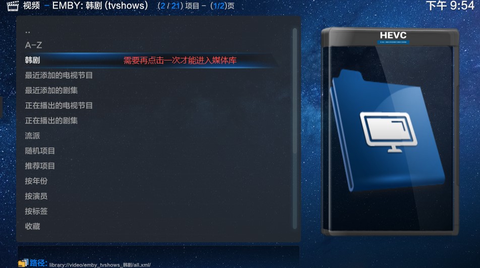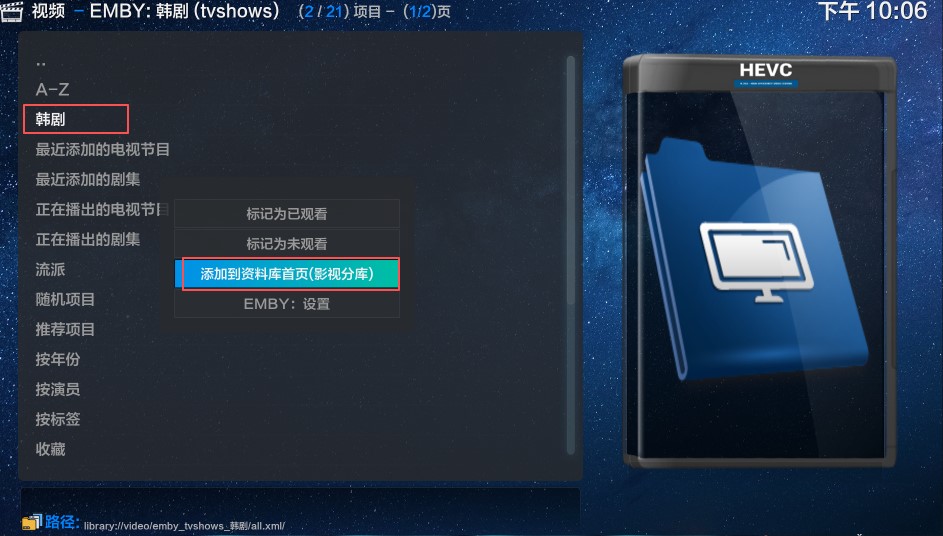 为了便于查找和管理,一般可以将不同的媒体库添加到影视分库。