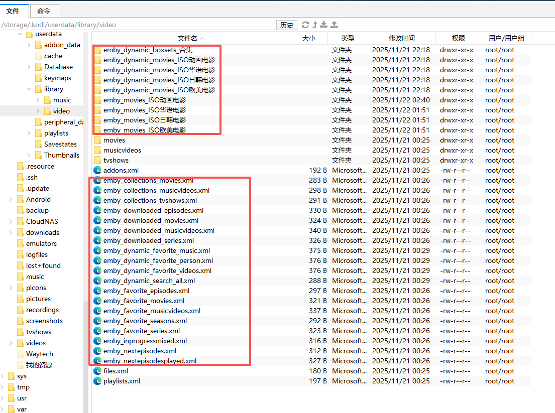 还有些如下图的,需要进ssh目录下删除(最简单的方法可以通过pc端网上邻居进入删除,路径都是一样的,看下面的图中有具体路径/userdata/library/video)