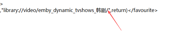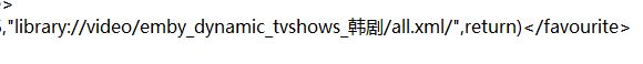 找到你要同步封面的媒体库名称,如我这里以下图“韩剧”为例,在韩剧后面的斜杠后面增减代码(注意有斜杠):all.xml/