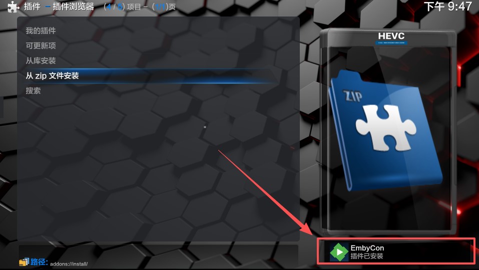 进入系统设置-插件-从zip文件安装,通过主文件夹进入你放置插件的文件夹并选中安装,选择emby-next-gen-10.0.47版插件安装