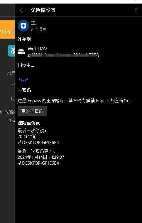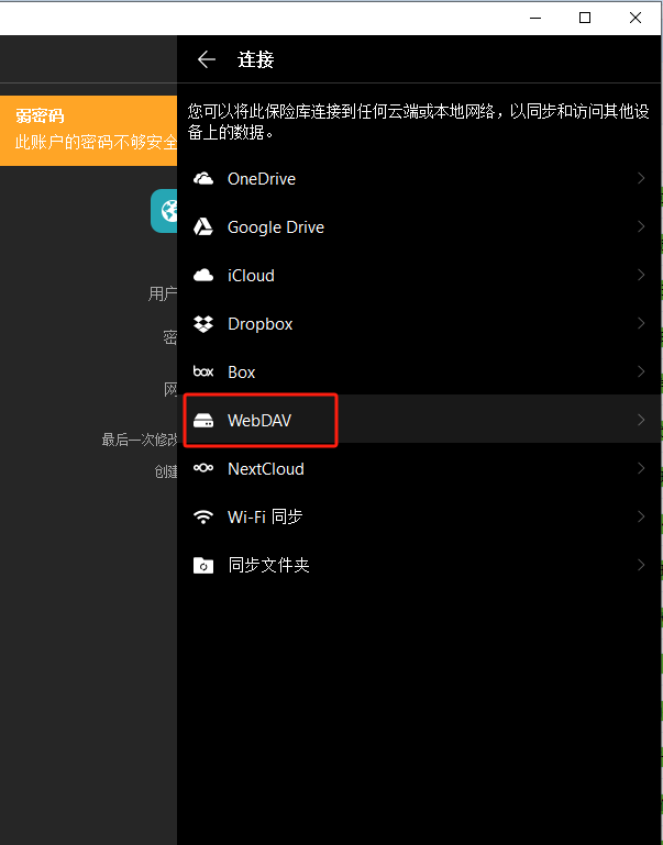 点击左下角设置齿轮,在右边下方找到保险库点击,选择webdav进入同步设置,如图,url输入你的反代地址,以及你设置的用户名和密码,点击连接即开始同步