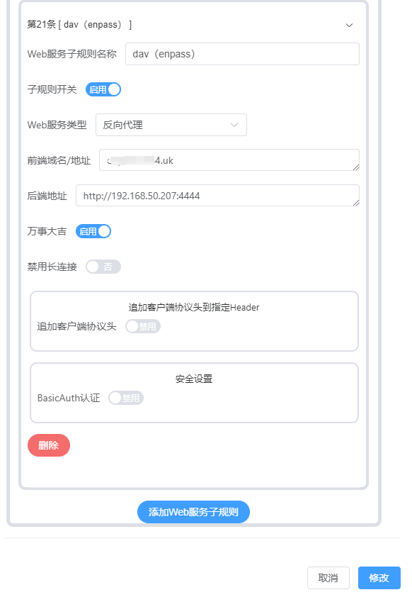 利用lucky反代功能,把刚刚设置好的地址(如我得是nas的ip:4444进行反代),具体设置方法可看本人关于lucky的攻略