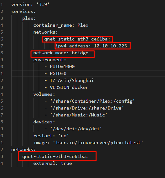 威联通的docker应用经常会使用独立ip,但是假如你重装应用,独立ip需要重新设置,有时候多了自己都记不清那些应用对应是哪个ip,这时候可以通过将独立ip写入docker compose命令的方法来固定。