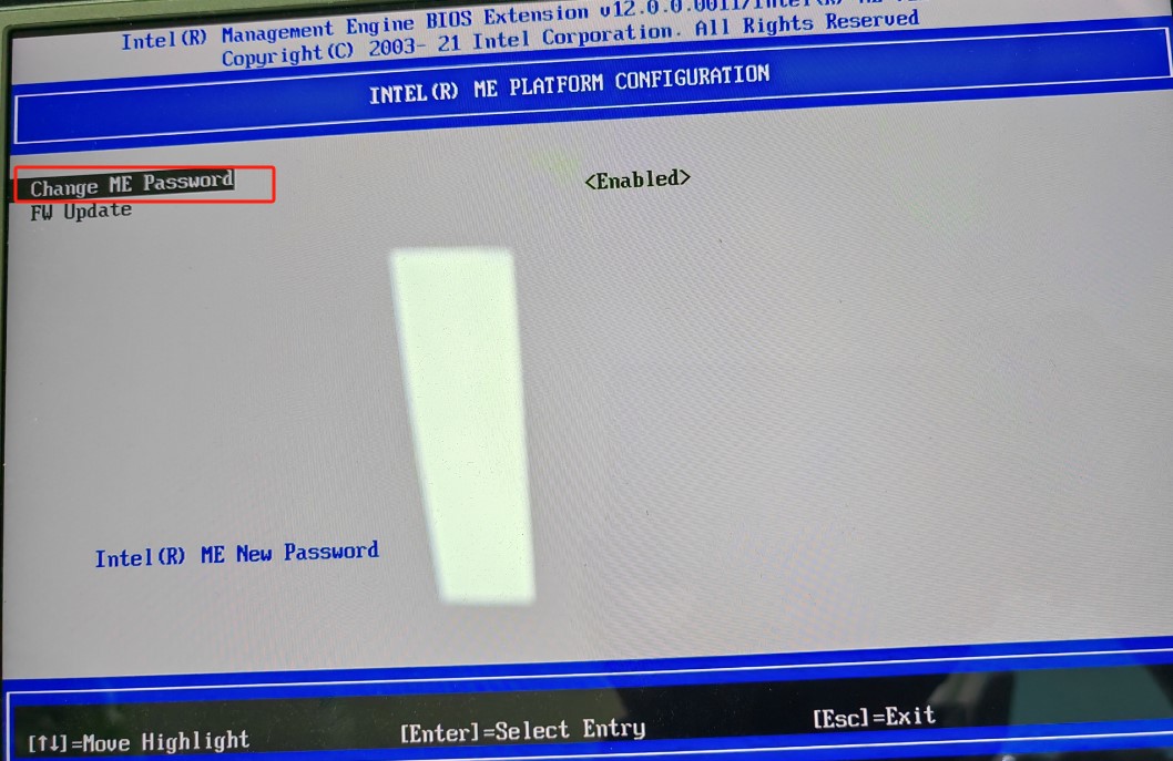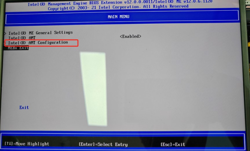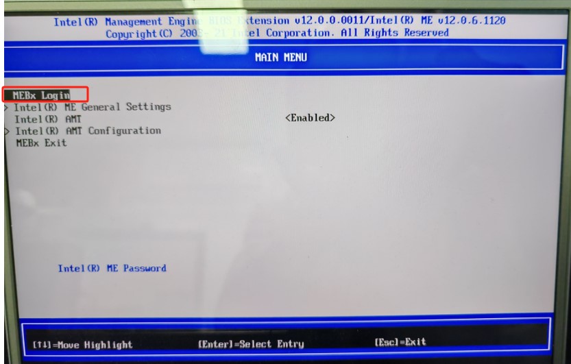 5.开机后立即按ctrl+p进入vpro设置,在MEBx Login选项上按回车,会让你设置密码,首先输入admin,回车后设置密码,密码8个字符以上,要有符号、英文大小写和数字,比如 #12345Ab,这个密码是你之后远程连接vpro的密码,这里记好了